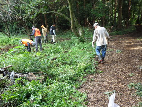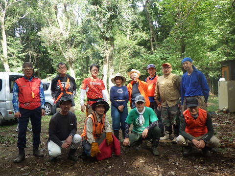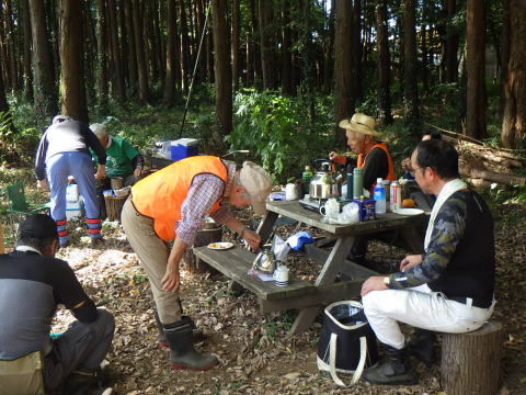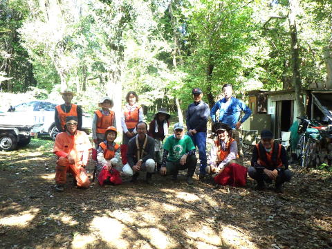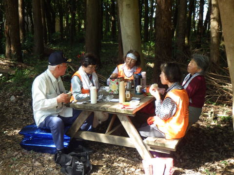 畑側境界付近の作業前 | 林内にて昼食 | |
