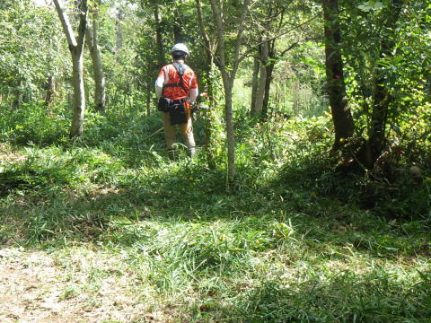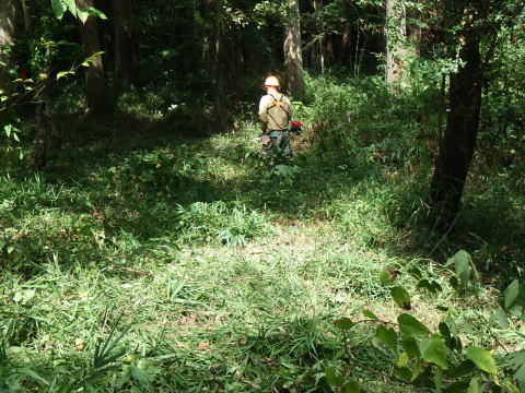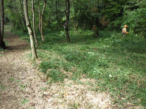 小茎870-1中央付近の作業前 | 小茎870-1の下草刈り | |