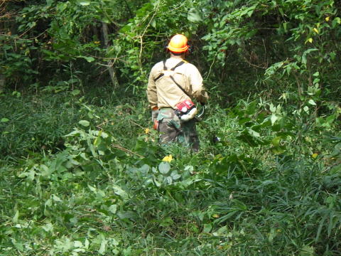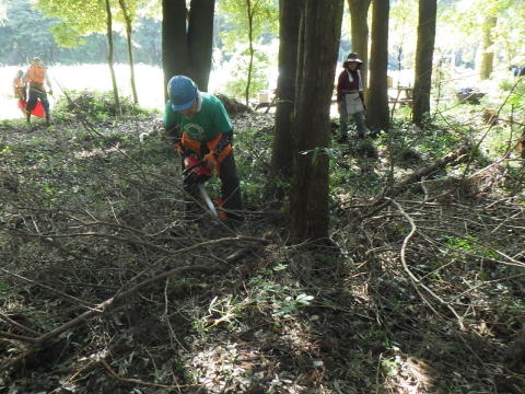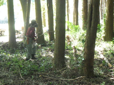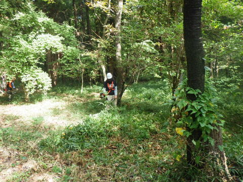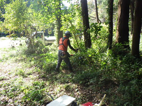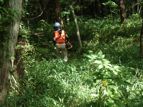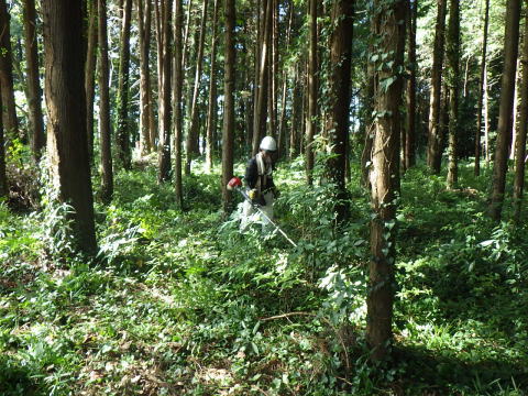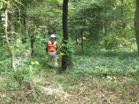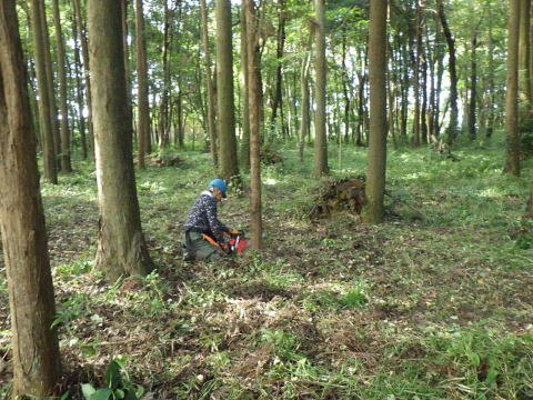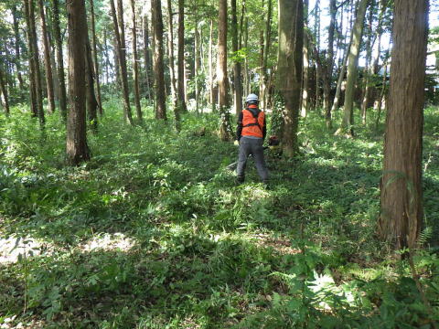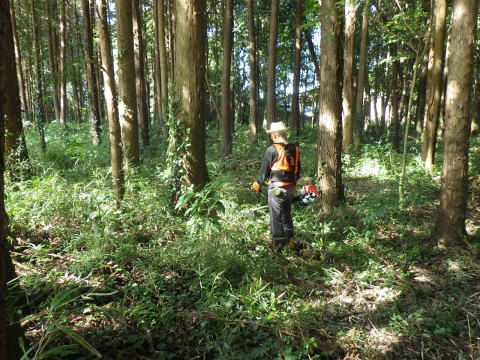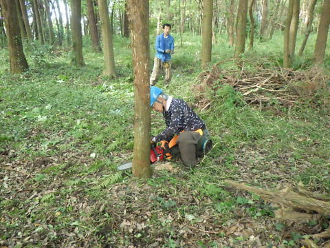 六斗893の下草刈り中 | 六斗893林内の枯れ木伐採 | |