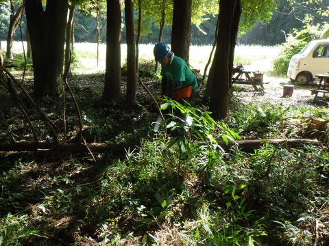 林内にて昼食 | 小茎893東側付近の下草刈り | |