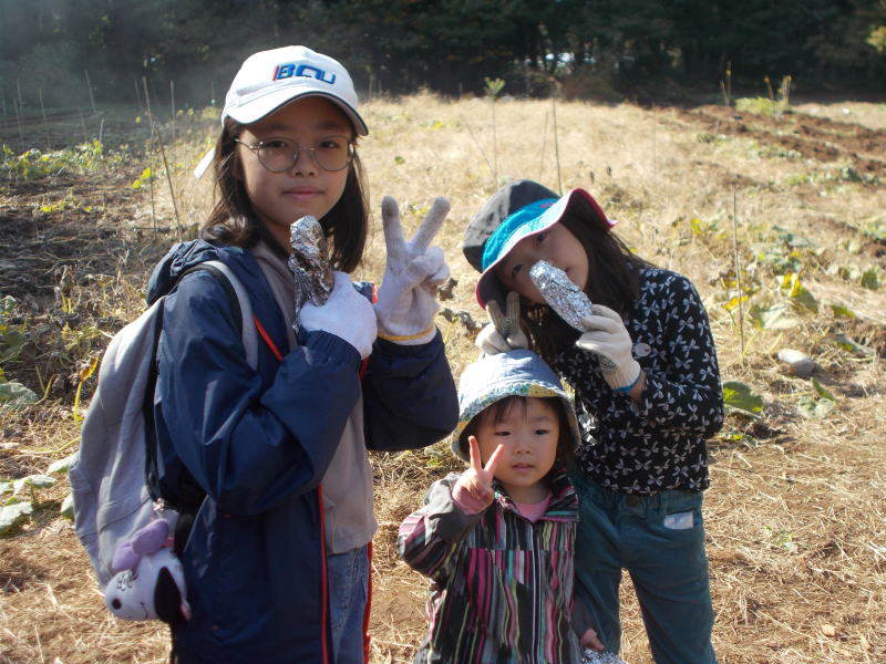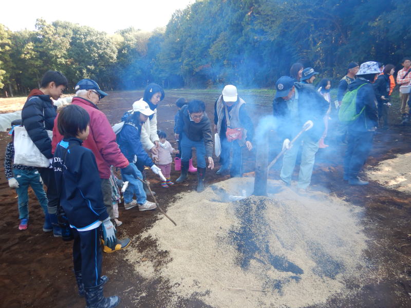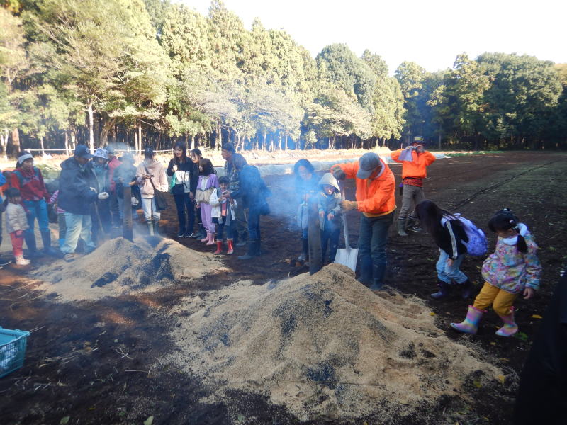 | もみ殻燻炭による焼き芋 |