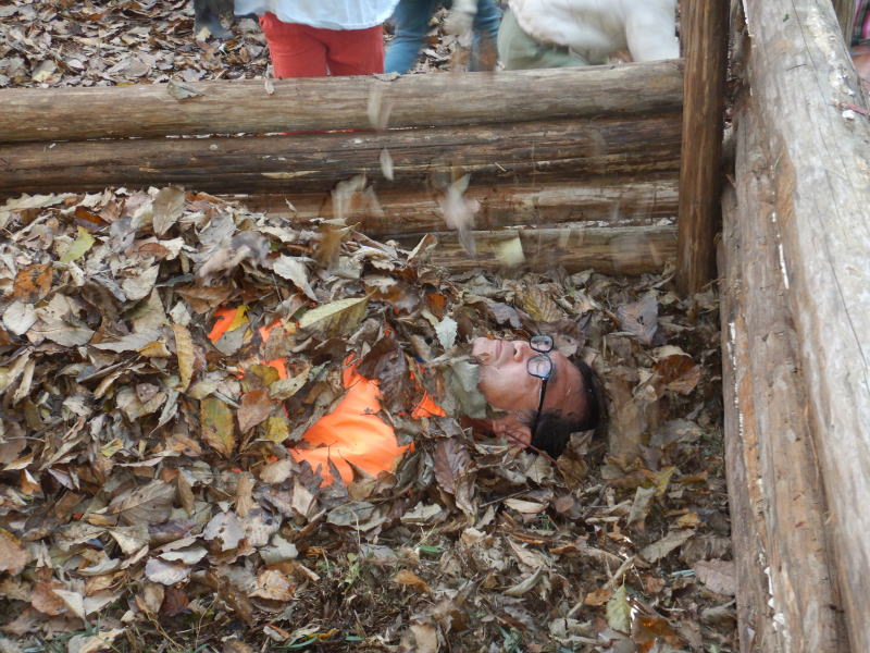 | スタッフが落ち葉に埋もれています |