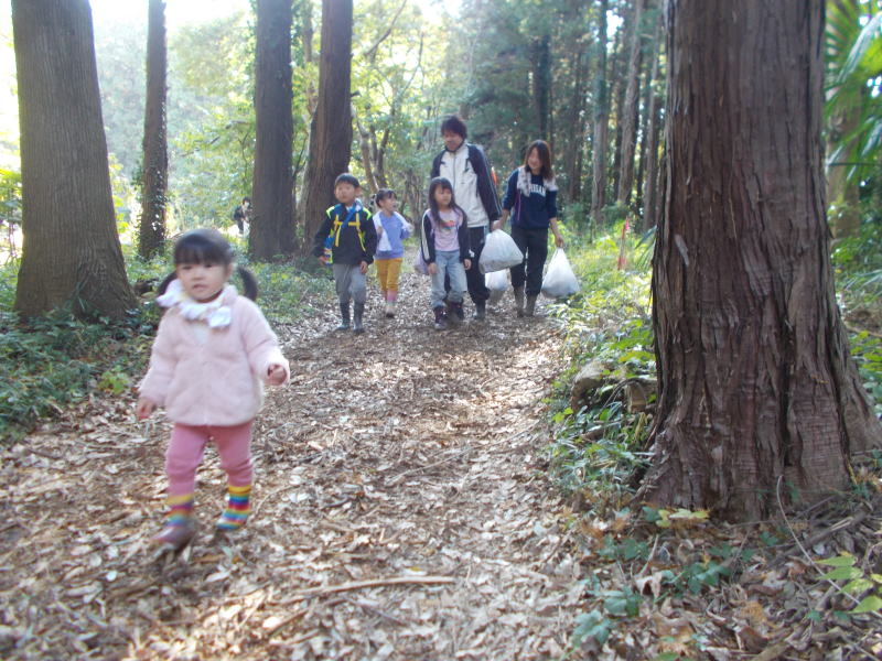 | 落ち葉集めのため森を移動 |