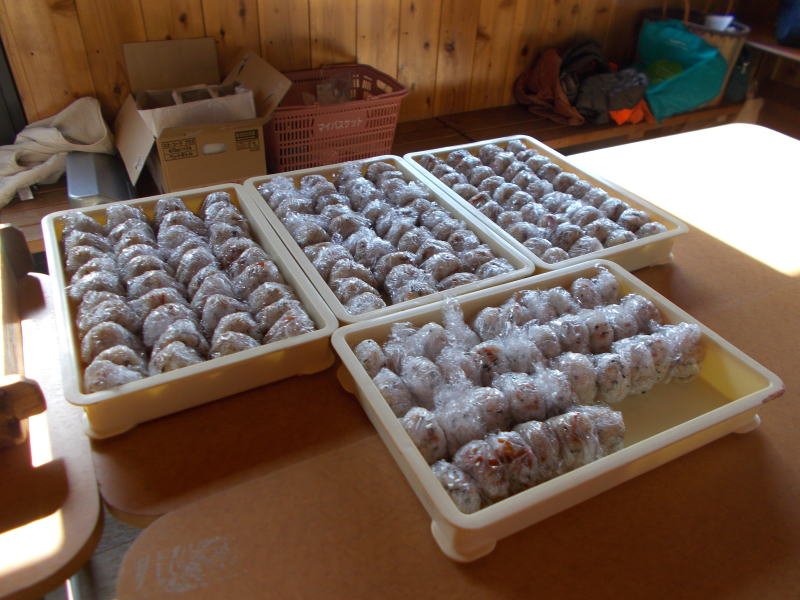 | 昼食は六斗集落でお祭りや飲み会等の集まりの時に作る特別なおにぎりをおばあちゃん達が作ってくれました |