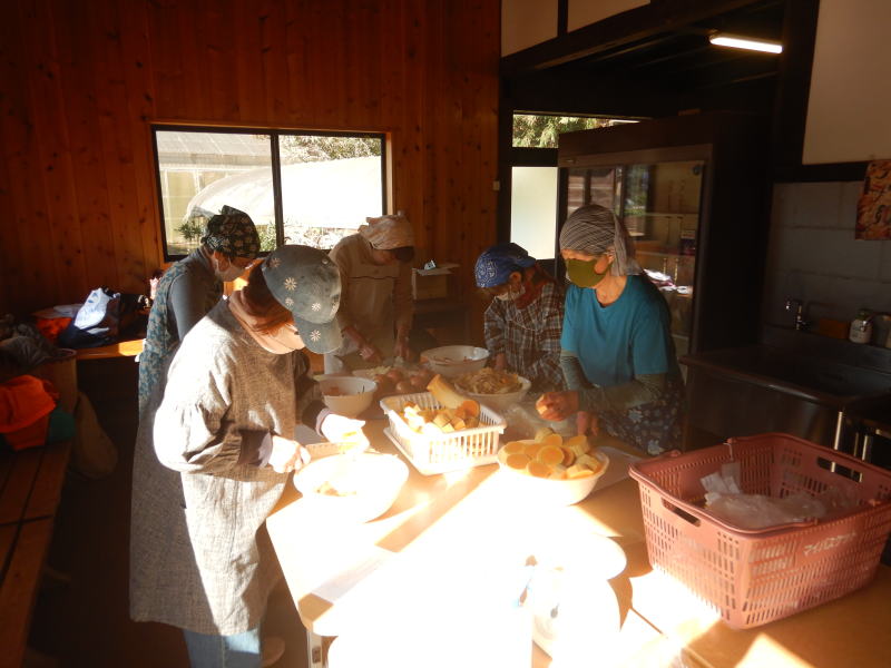 | 女性会員によるカボチャスープの準備 |