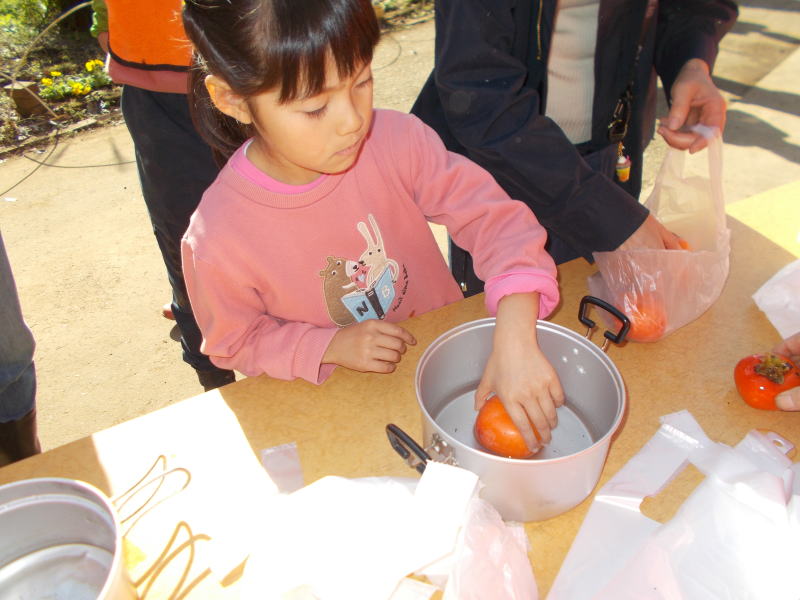| 収穫した渋柿を焼酎に付けて渋抜きする |